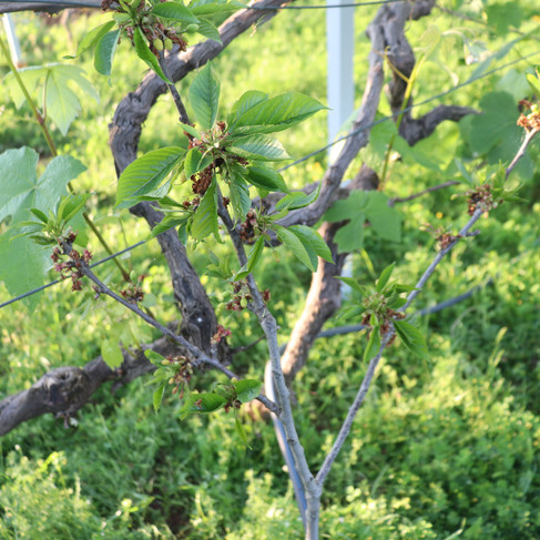 A second pretty tree to fail was our dwarf cherry. We've about given up on this little one. It's been the same size for several years now and has yet to produce a single cherry. It was a late bloomer this year and looked great for about two weeks but most of the fruits have died and are falling off.