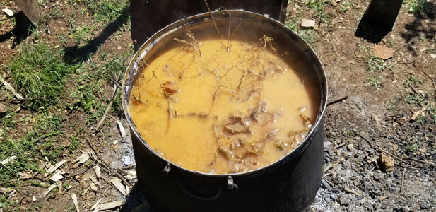 We were lucky to have bright blue skies and a warm breeze both days as this requires constant attention while babysitting the fire.