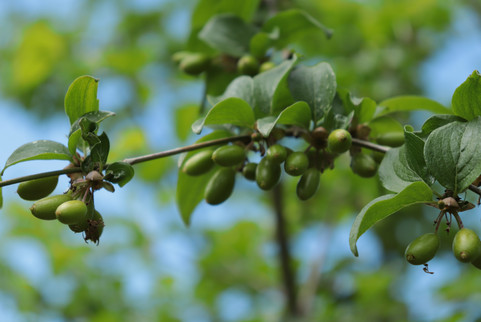 We walk the garden daily to inspect fruit trees for any disease or fatigue. The weather conditions have been ideal for our mulberry and thana (cornelian cherries) trees. Our pears are hit and miss, two trees basically picked bare after inspection of some vagrant worm and the peach, cherry, some figs show some damage from the late snow/frost on April 1st. The apple, cherry, plum, persimmon, kiwis, olive, pomegranate and kimchi (jujube) trees are starting to develop more each day. One cherry tree seems to be either dead or dormit for the year. We have several new trees, nectarine, plum, fig, pomegranate, and even a grafted quince with a pear doing well this spring.