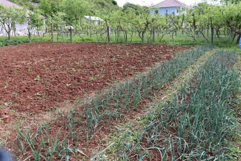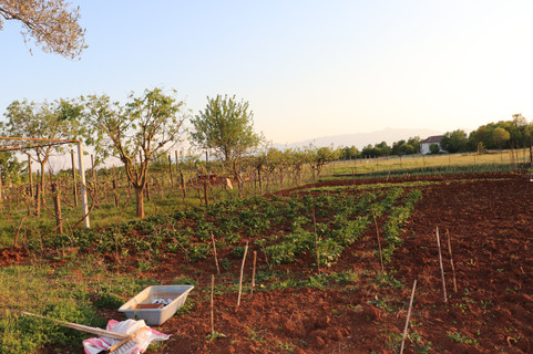 We had a few warm days this week before a few days of rain in the forecast. We took a look at our seedlings and a few starter plants from town before we mapped out the rest of the garden. We do not own any fancy equipment minus a few shovels (called bells in Albanian), rakes and a hoe. We fertilized our soil with a mixture of dried sheep manure from the neighbors paddock after hand tilling the land. We had family visit in the afternoon on the last day and they assisted with last leg of planting and root clean up which was amazing.