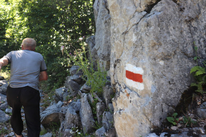 The first hiking experience started along the side of a spring reaching a fenced section we encountered a local sheep shepherd and his herd. He offered to show us a path up to a mountain clearing of Maja e Berizhdalit. He was wearing a pair of house slippers and is 60 years old. He navigated and climbed the steep leaf littered path with the agility of a 10 year old on playground equipment. Admiration of this man's physical health and ability was off the charts. He has spent his entire life living in the valley sharing many tales as we climbed. Most of them I heard via third party since I was near the end of the pack but there is a stretch in the pass up the mountain where many Albanians were killed during the Communist era along the borderlands near Montenegro. He did mention a tale or two of fairies and their wild goats. When we reached the summit almost two hours later, it was a large clearing with a few abandoned structures, a spring cutting down the middle to lower pastures and 360° view of the mountains and valley below.
